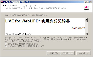 「このライセンス契約書に同意します」を選択し、「インストール」で進む。